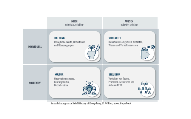 Die Organisationskultur umfasst zum einen die gemeinsamen Werte, Überzeugungen, Normen und Rituale, die das Verhalten und die Interaktionen innerhalb eines Unternehmens prägen. Zum anderen formen eine innovative Ausrichtung (Vision, Leitbild), Kommunikationsdynamiken und auch Zusammenarbeitsstrukturen die Kultur eines Unternehmens. Die Organisationskultur ist das unsichtbare Band, das die Mitarbeitenden verbindet und ihnen Orientierung gibt.